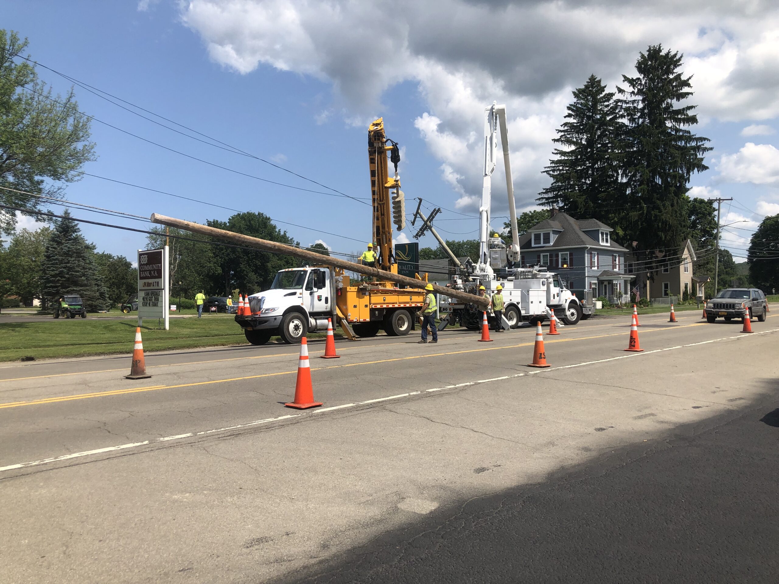 FALCONER – Power is restored in Falconer after a truck hit a power pole Thursday morning.