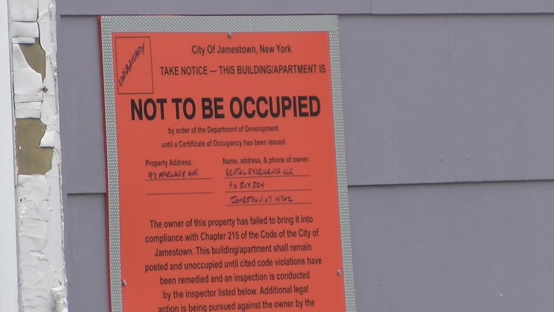 The house was condemned by the Jamestown Department of Development and the children were placed in the care of a family relative.