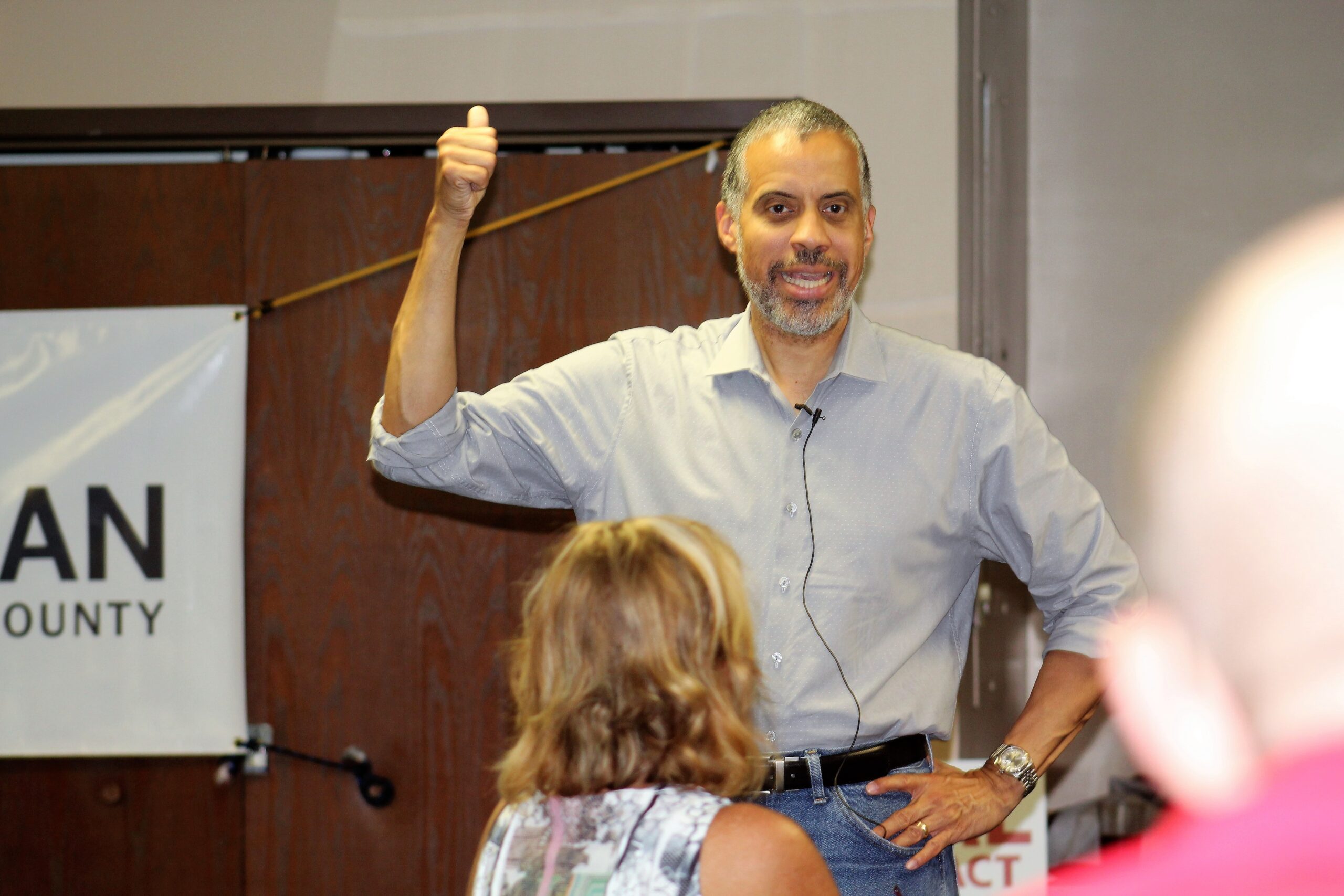 Sharpe said he will support whomever is nominated and asked voters to have an open mind about voting for someone not Republican or Democrat.