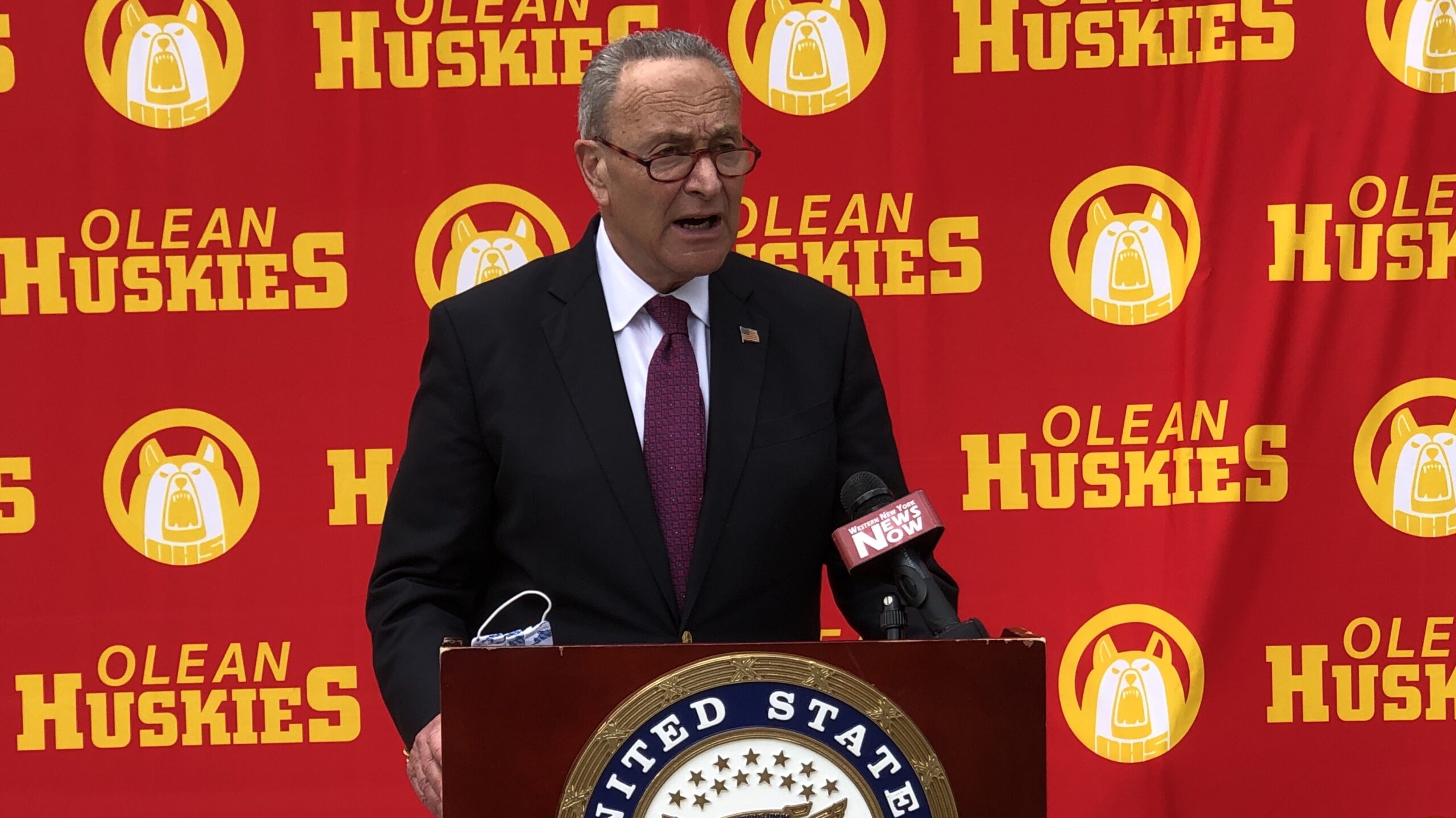 Schumer spoke at Olean High School Monday afternoon with local leaders in Cattaraugus County.
