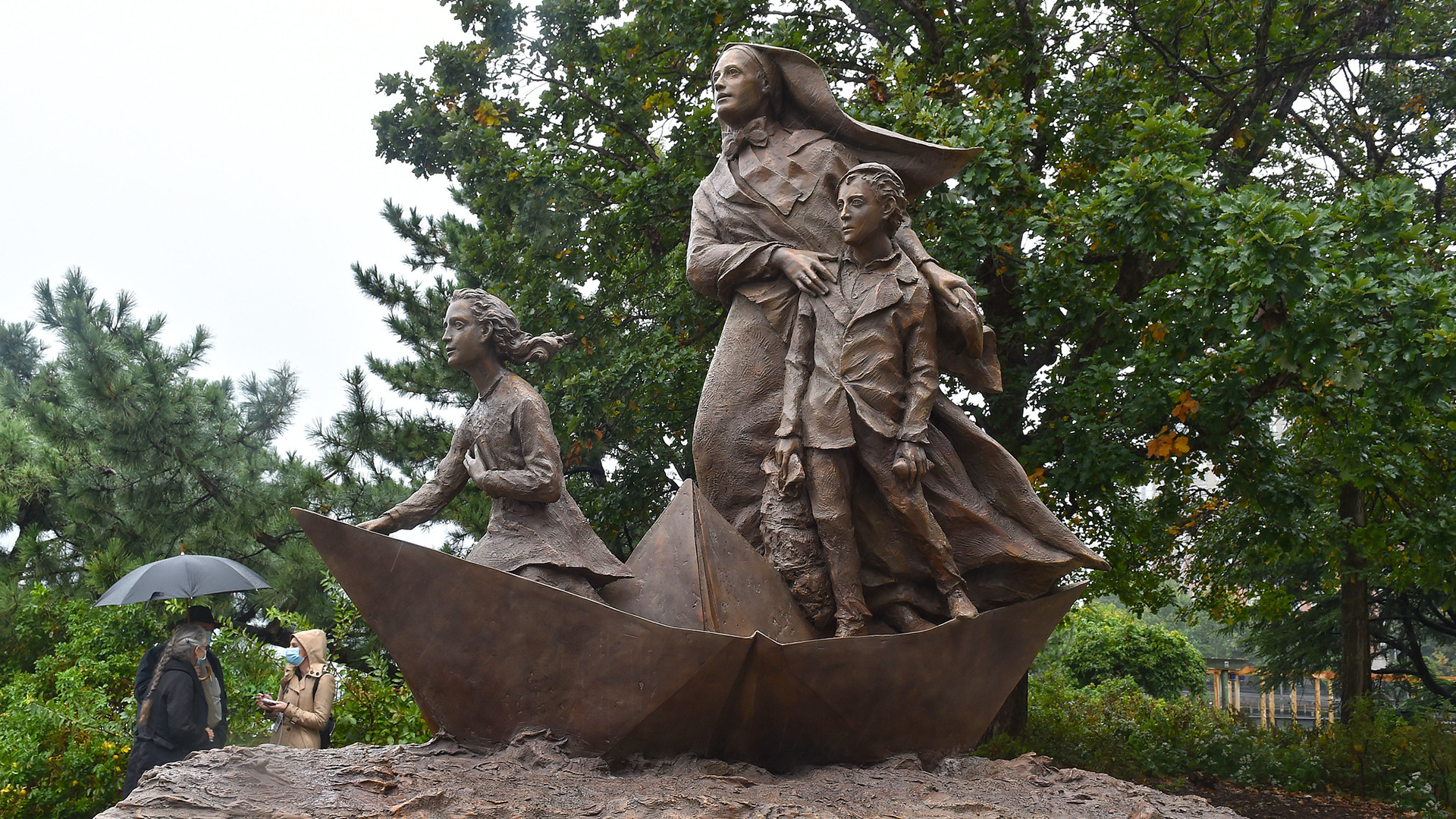 The unveiling of the statue came a year after Cuomo announced that the state would commission a monument to the Roman Catholic nun who was canonized in 1946. It stands in a spot by the Hudson River with a view of Ellis Island and the Statue of Liberty.