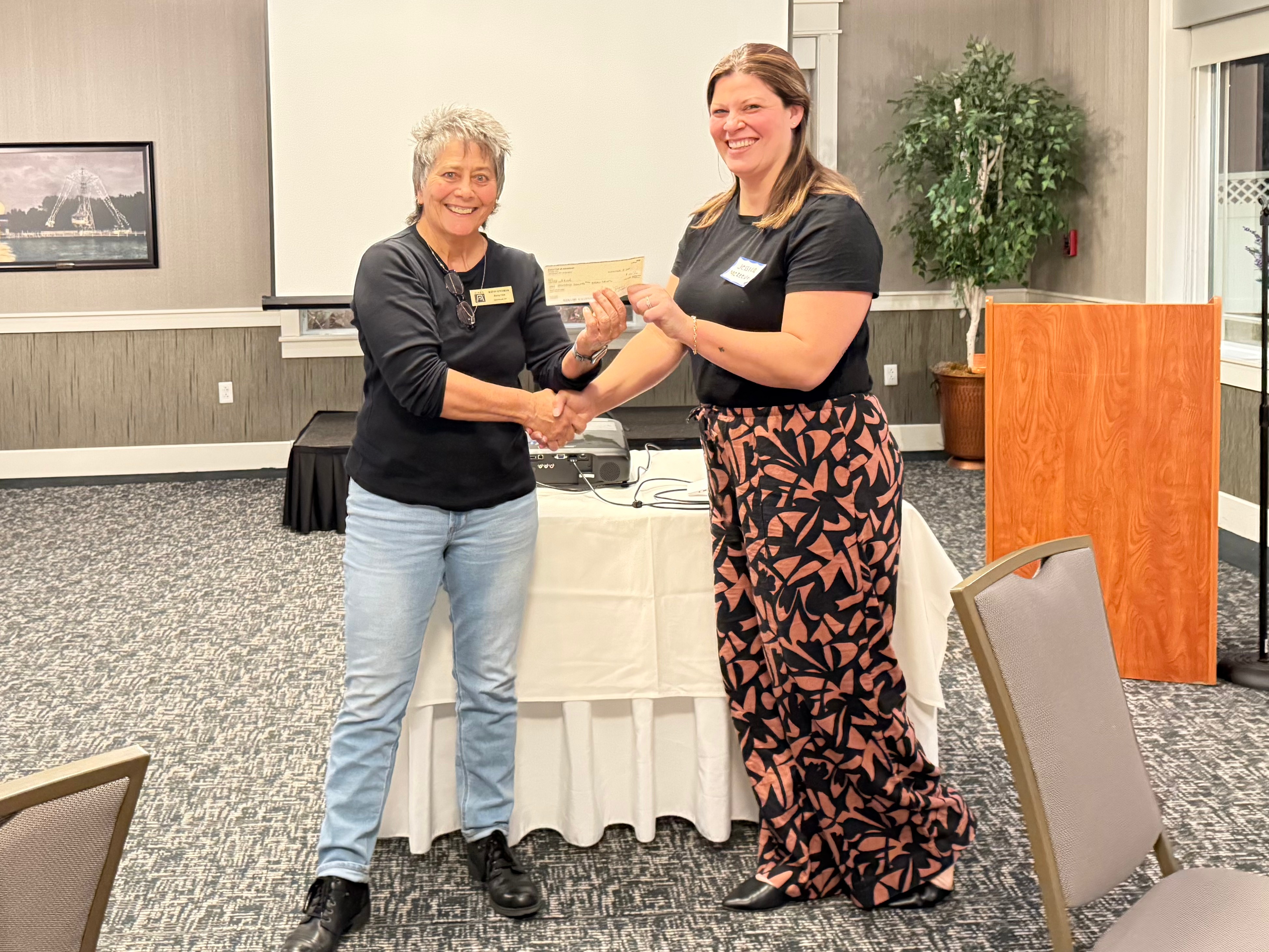 Pictured L to R are Kathy Stedman from the Zonta CLub of Jamestown and Jessica McKeever from Arise Chautauqua.