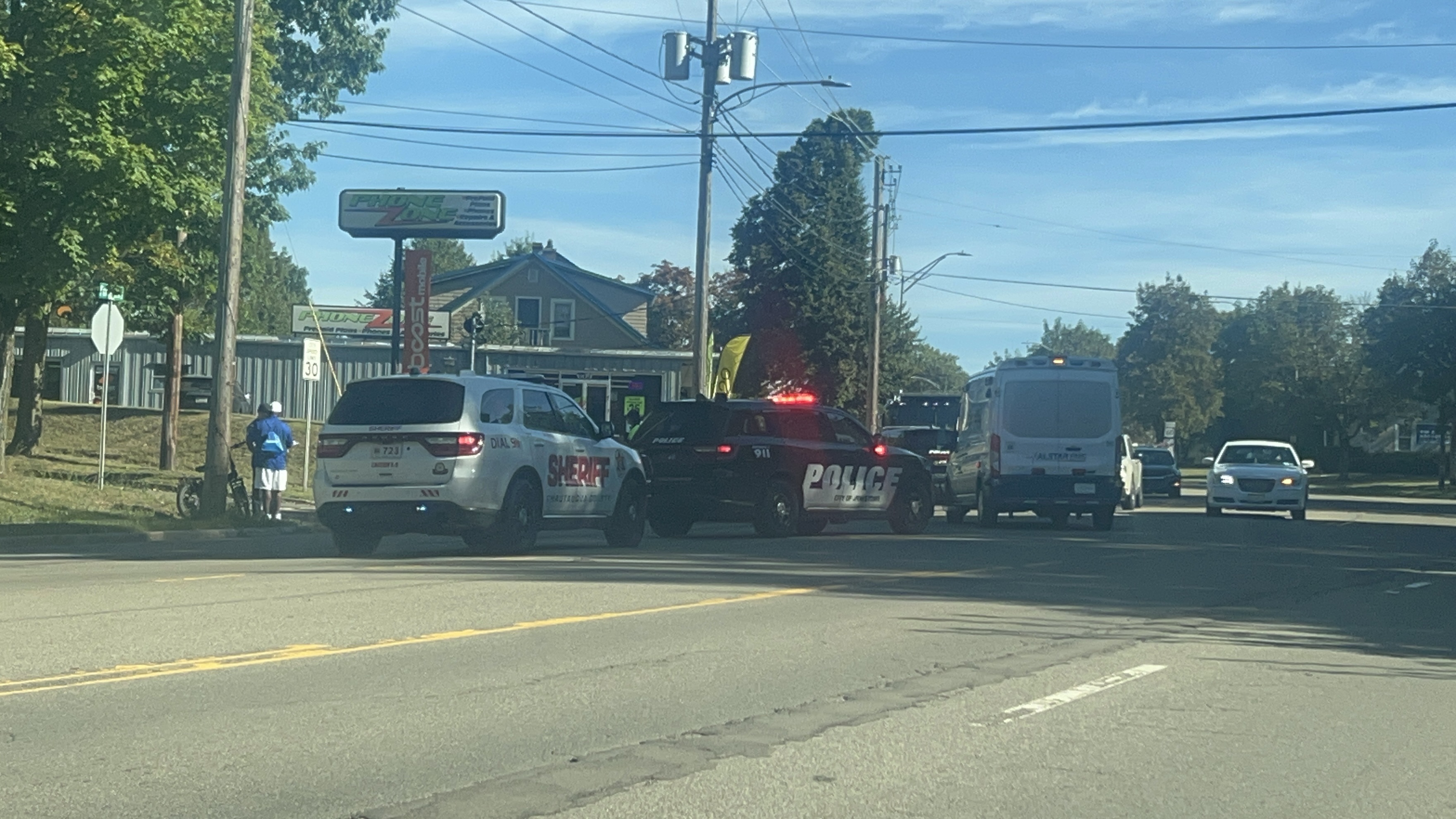Jamestown, N.Y. – The Jamestown Police Department, Chautauqua County Sheriff’s Office, Alstar EMS, and the Jamestown Fire Department are on the scene in response to what seems to be a car crash near Phone Zone on Foote Avenue.